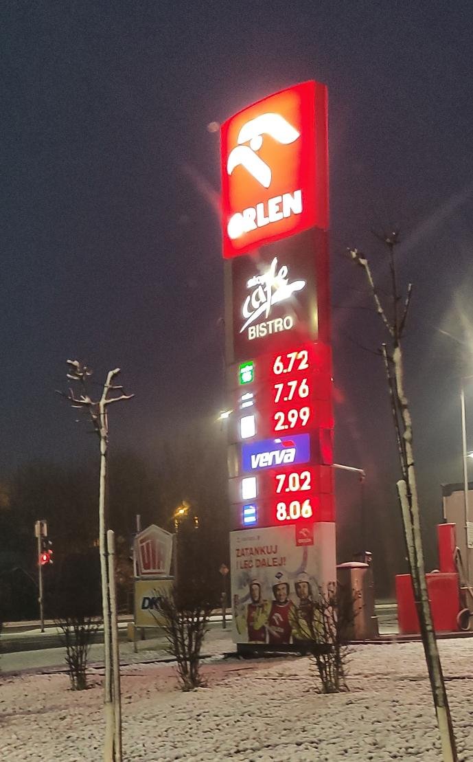 Dziś baryłka ropy kosztuje 76,82$ a litr ON na Orlenie 7,76zł przy kursie 4,45zł/$